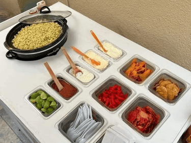 Comfort food meets creativity. A fun instant noodle station where guests can top their Maruchan cups with jalapeños, corn, lime, or hot sauces.