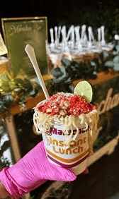 Vibrant seasonal fruit cups topped with lime, Tajín, and chamoy. Refreshing, colorful, and perfect for warm days or outdoor events. Includes setup, utensils, and an attendant for serving.