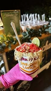 Tostilocos are fresh with crunchy chips, cucumber, peanuts, chamoy, and tamarind candies.